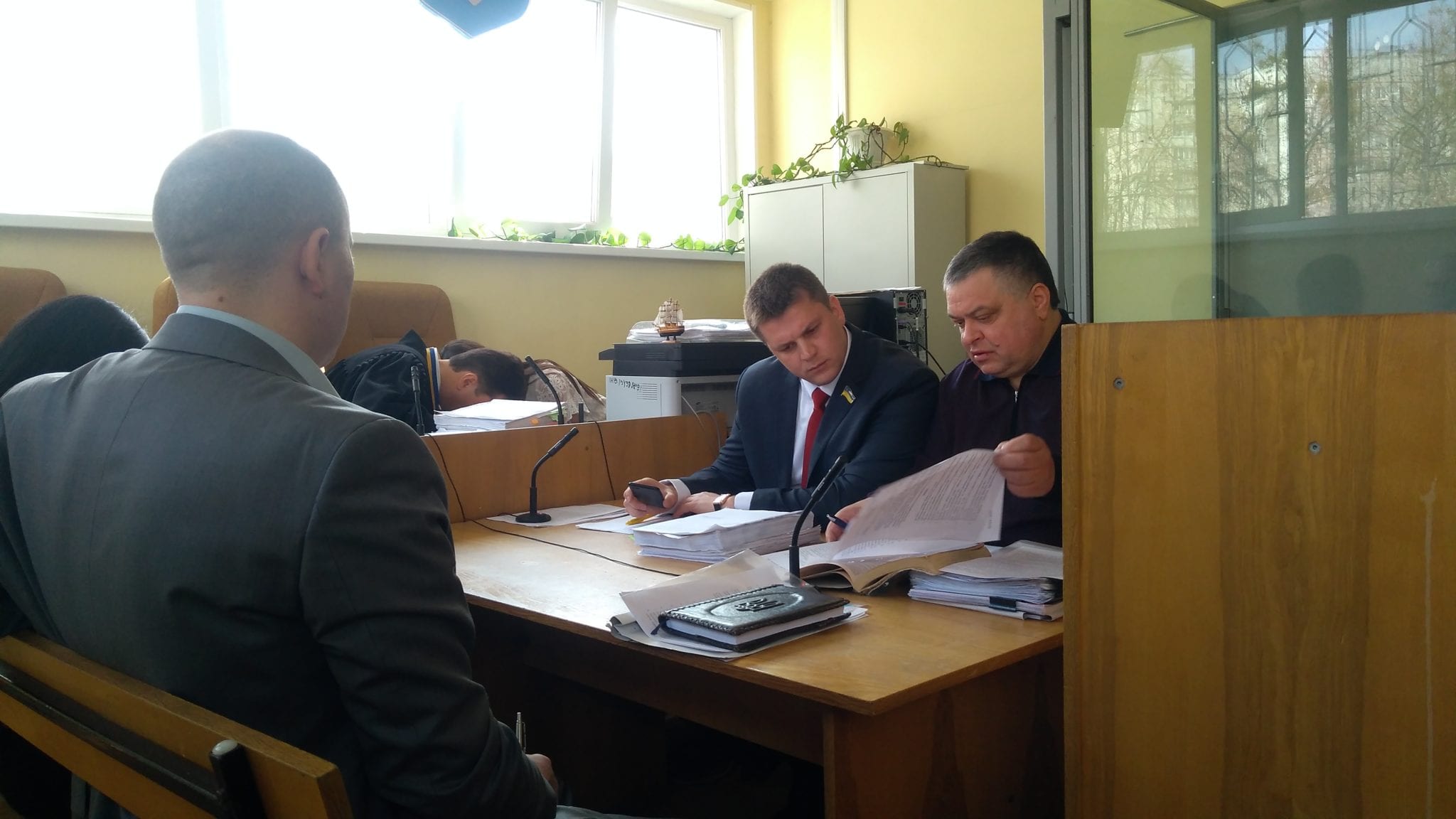 Судебное заседание за вычетом перерыва длилось около 20 минут. Потерпевшие сотрудники СБУ не явились по причине занятости на работе, о чем сообщили суду в письменной форме через сотрудников прокуратуры.